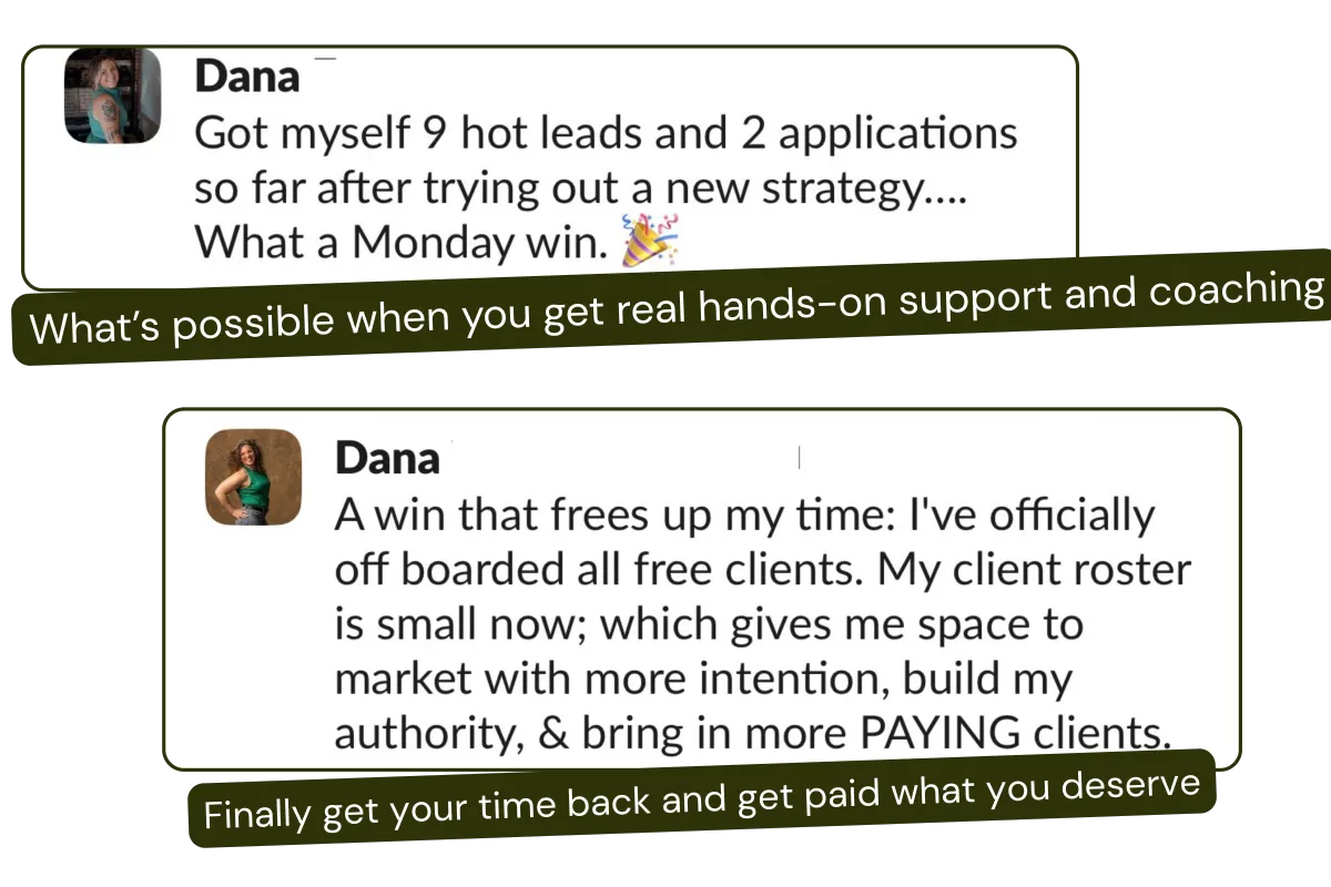→ Selling sessions limits the depth of transformation you can actually provide. Clients need support beyond the hour if they’re going to see lasting results — and you deserve to be paid for that level of impact.
